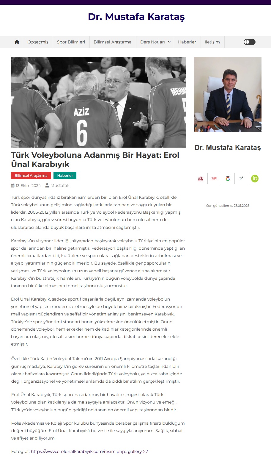 Türk Voleyboluna Adanmış Bir Hayat: Erol Ünal KARABIYIK13/10/2024